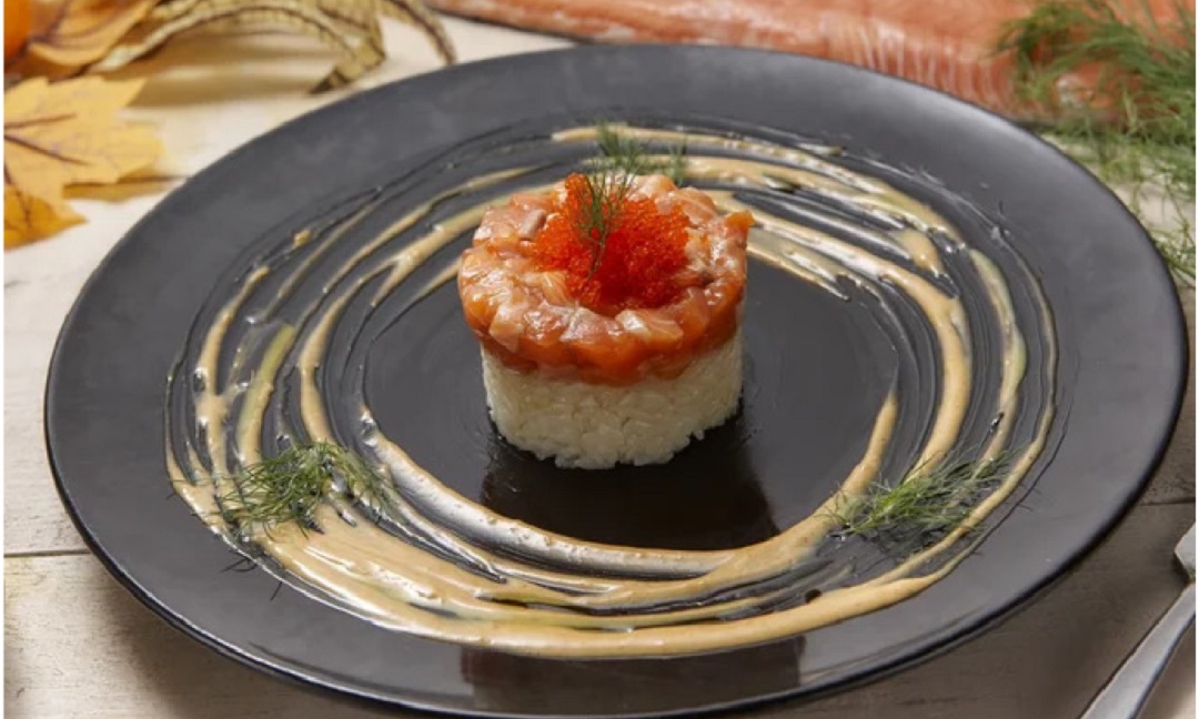 たっぷりのトキシラズに昆布だしと醤油で味付けをし、寿司仕立てに。とびっこのプチプチ感とディルの爽快な香りをスパイシーマヨソースとご一緒にどうぞ!
