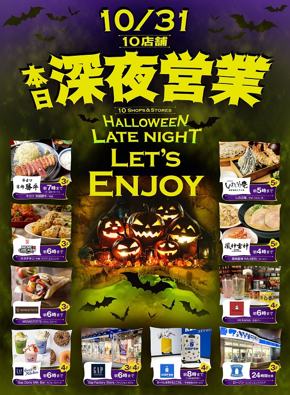 ユニバーサル・シティウォーク大阪 一部店舗深夜営業のおしらせ日時:10/31(金) ~11/1(土)早朝ユニバーサル・シティウォーク大阪では、上記期間にて一部店舗は営業時間を延長いたします。各SHOPの詳しい情報は、「フロアマップ」よりご確認ください。※各SHOPの延長時間につきましては上部表示の画像です 前のページ 一覧 次のページ