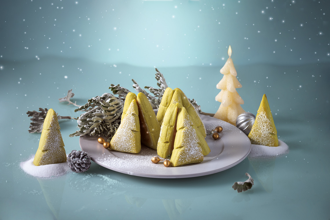 ほんのりピスタチオペーストを練り込んだ、もみの木パン。焼き上がりがほっこりかわいい、季節限定パンです。