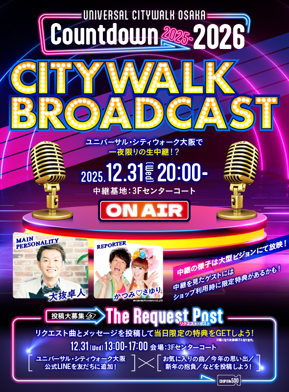 特別なMCとリポーターを迎え、館内とウォークをつなげ、“おなじ瞬間、おなじ熱狂”をつたえるCITYWALK BROADCASTをお届け!