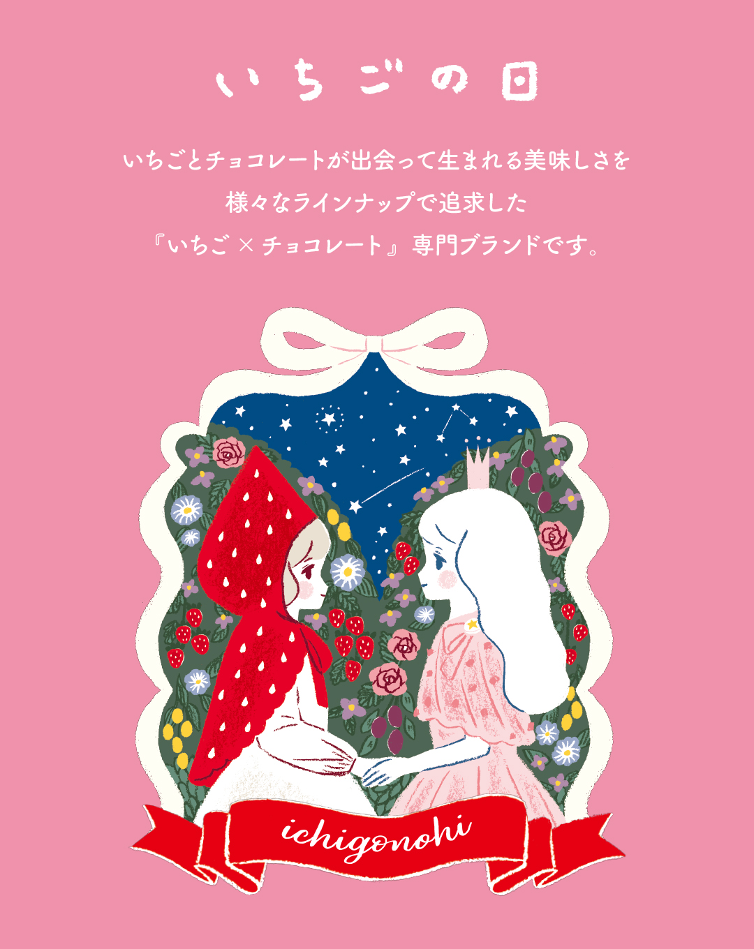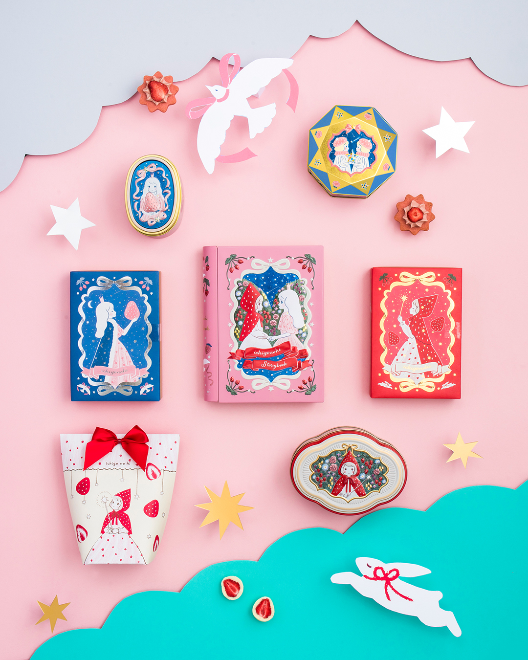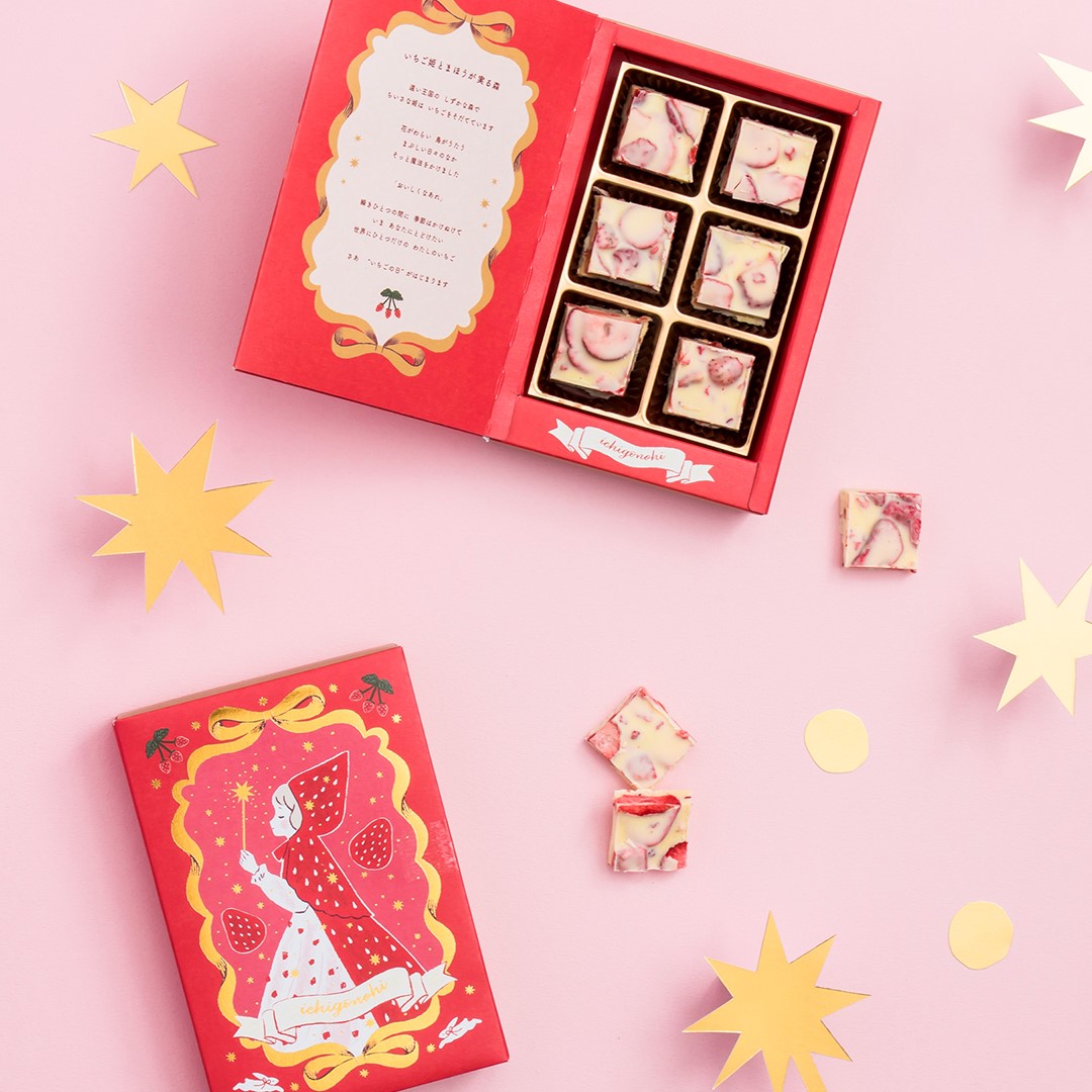 昼と夜。森と丘。魔法と願い。いまと未来。別の場所にいるふたりの姫(姉妹)が、それぞれのひかりでいちごを育て、「あなた」に届ける贈りもの。 いちごのお庭ショコラ(6個入) 1,188円(税込)フリーズドライいりご入りホワイトショコラ。 おとぎばなし缶(8個入) 2,160円(税込)絵本型の缶にお菓子をアソートしました。 ※なくなり次第、販売終了となります。 店舗情報はこちら 前のページ 一覧 次のページ